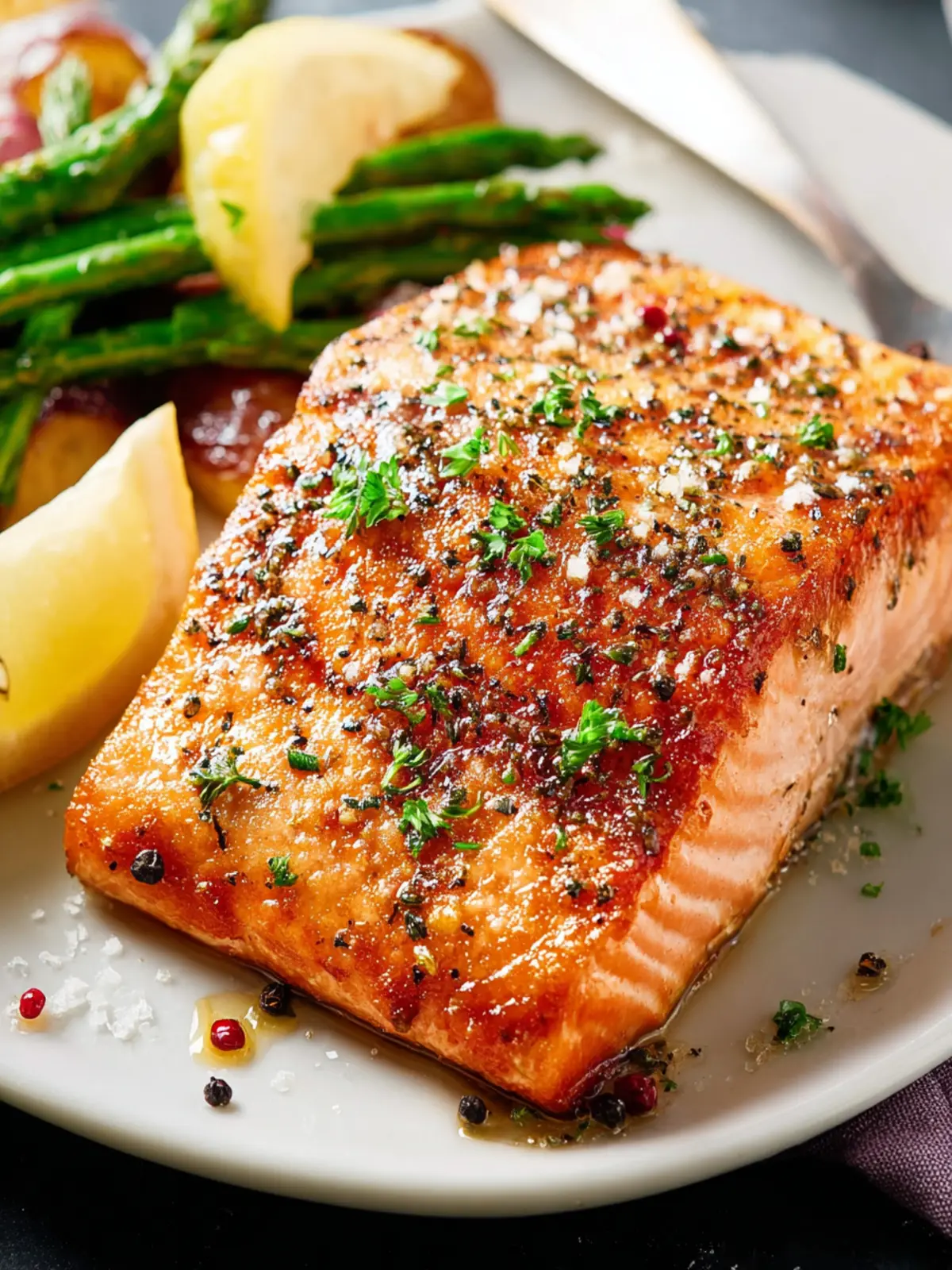 • Herb Butter: A dollop of herb-infused butter melts over the warm salmon, adding richness and an aromatic twist.