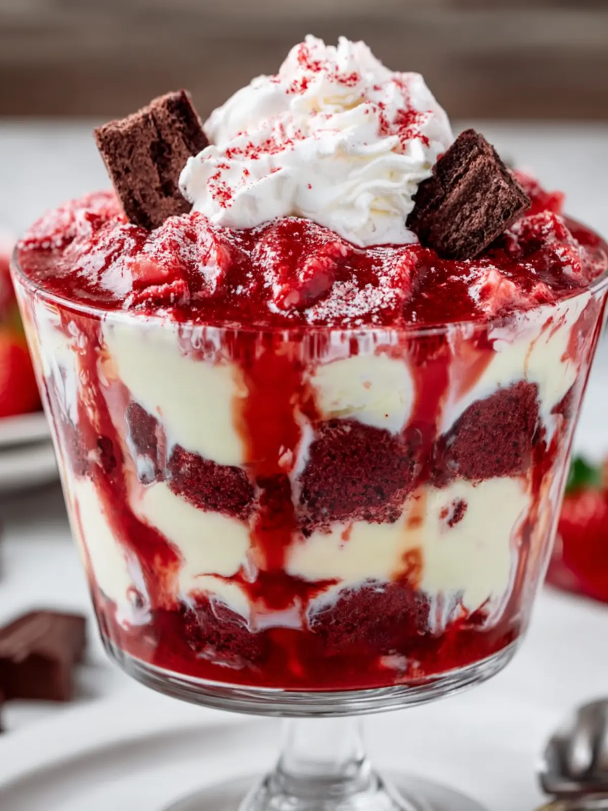 - Visually Stunning: The vibrant red layers contrasted with creamy white and colorful toppings make this trifle a showstopper at any gathering.